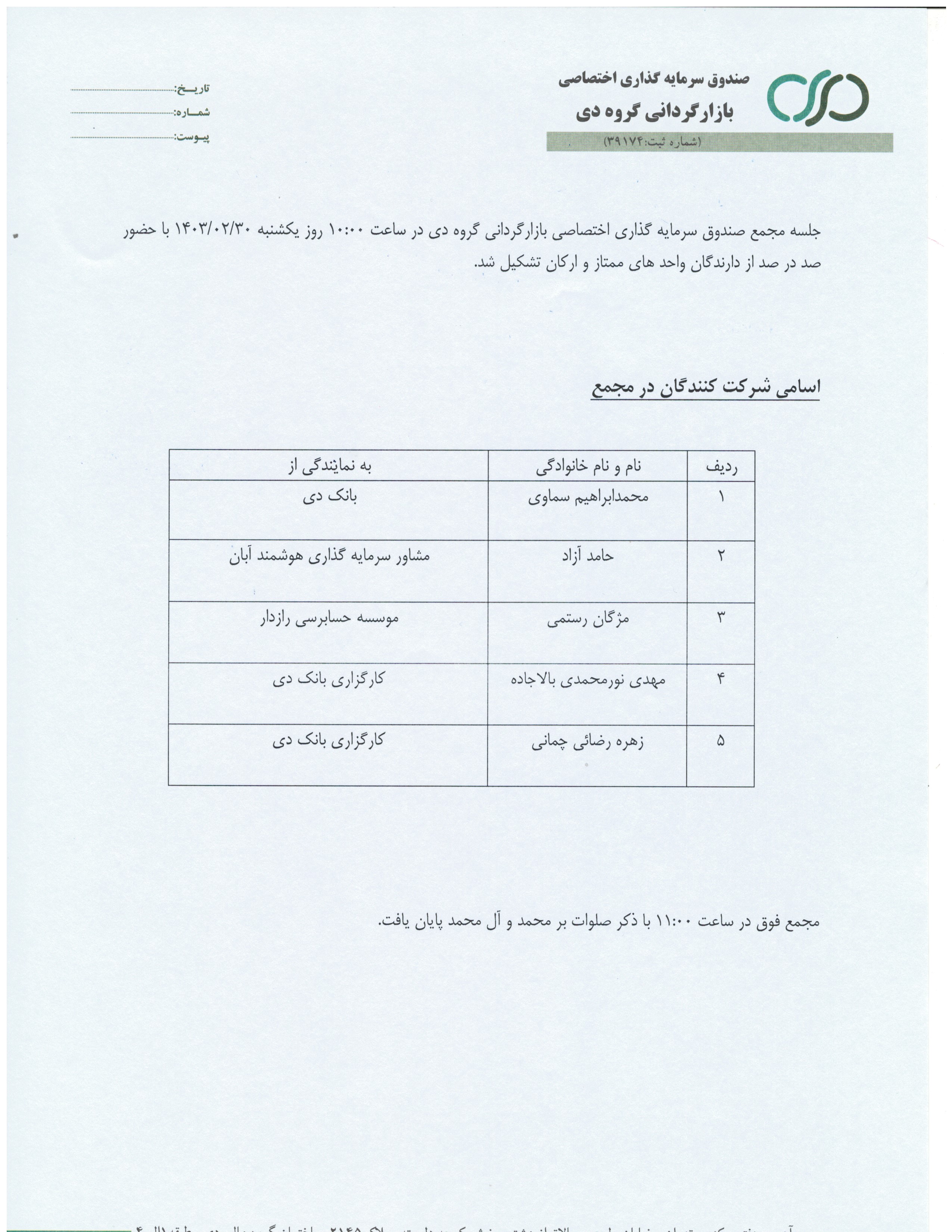 لیست حاضرین در مجمع مورخ 1403/02/30